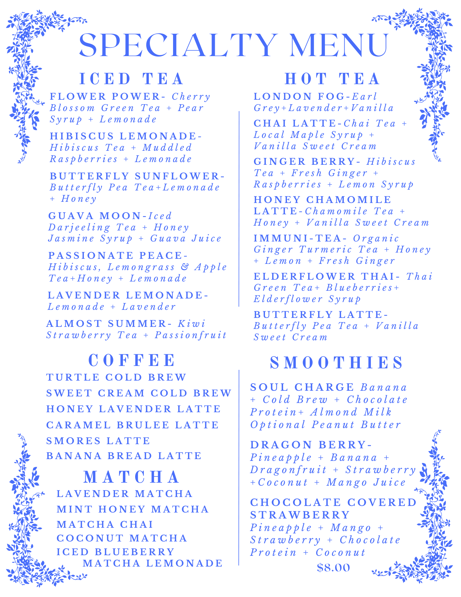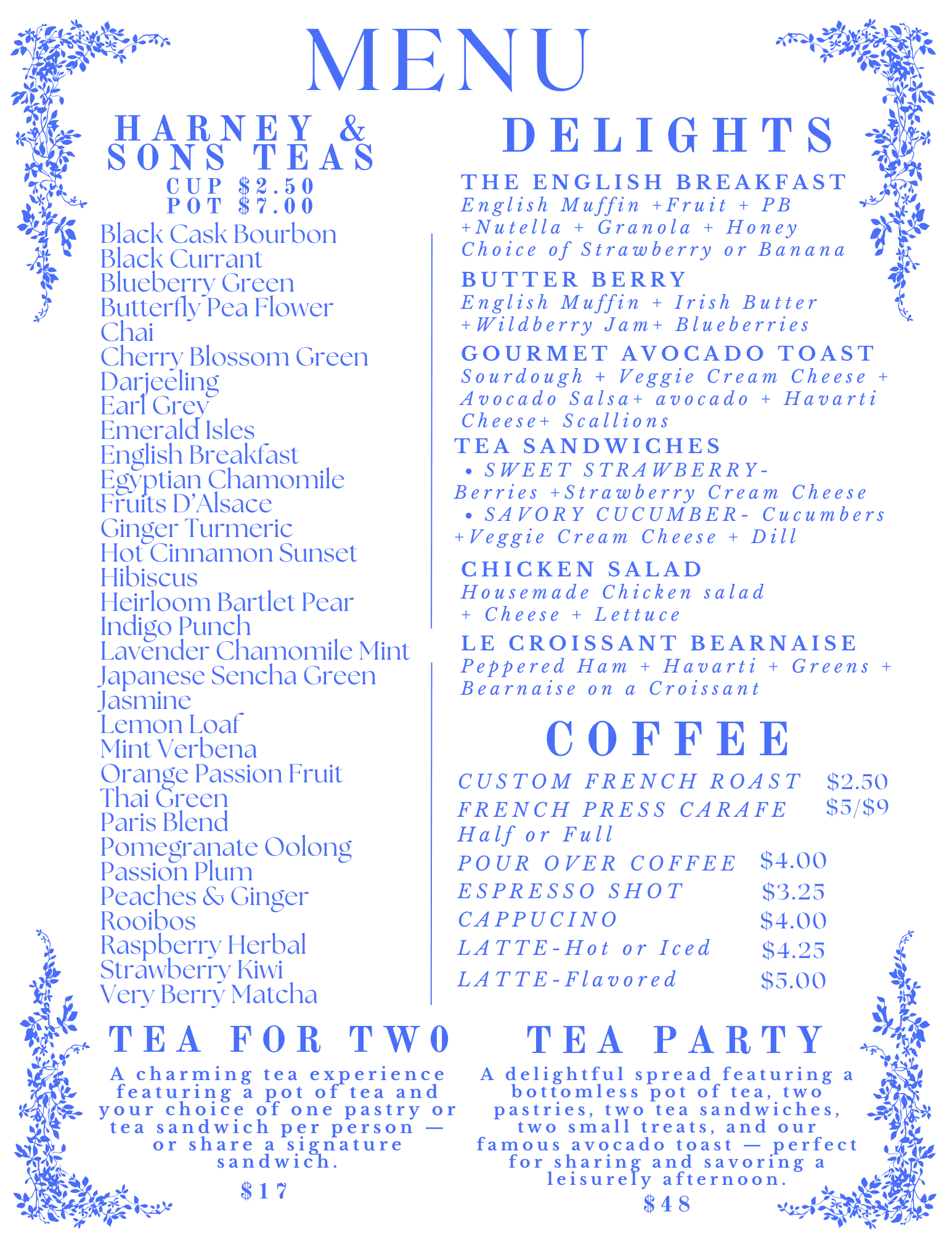 While we are not offering a formal “Christmas Tea” service, our full menu with specials will be available — thoughtfully crafted, made fresh & served with love.
